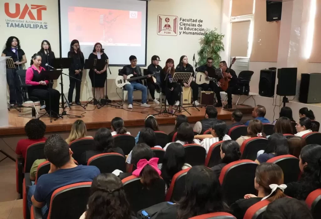La Universidad Autónoma de Tamaulipas (UAT) llevó a cabo la presentación del recital «Voces Violeta», dirigido a estudiantes universitarias, en un espacio de lecturas y canciones que reflejan el papel de la mujer en la sociedad y su lucha por la equidad.